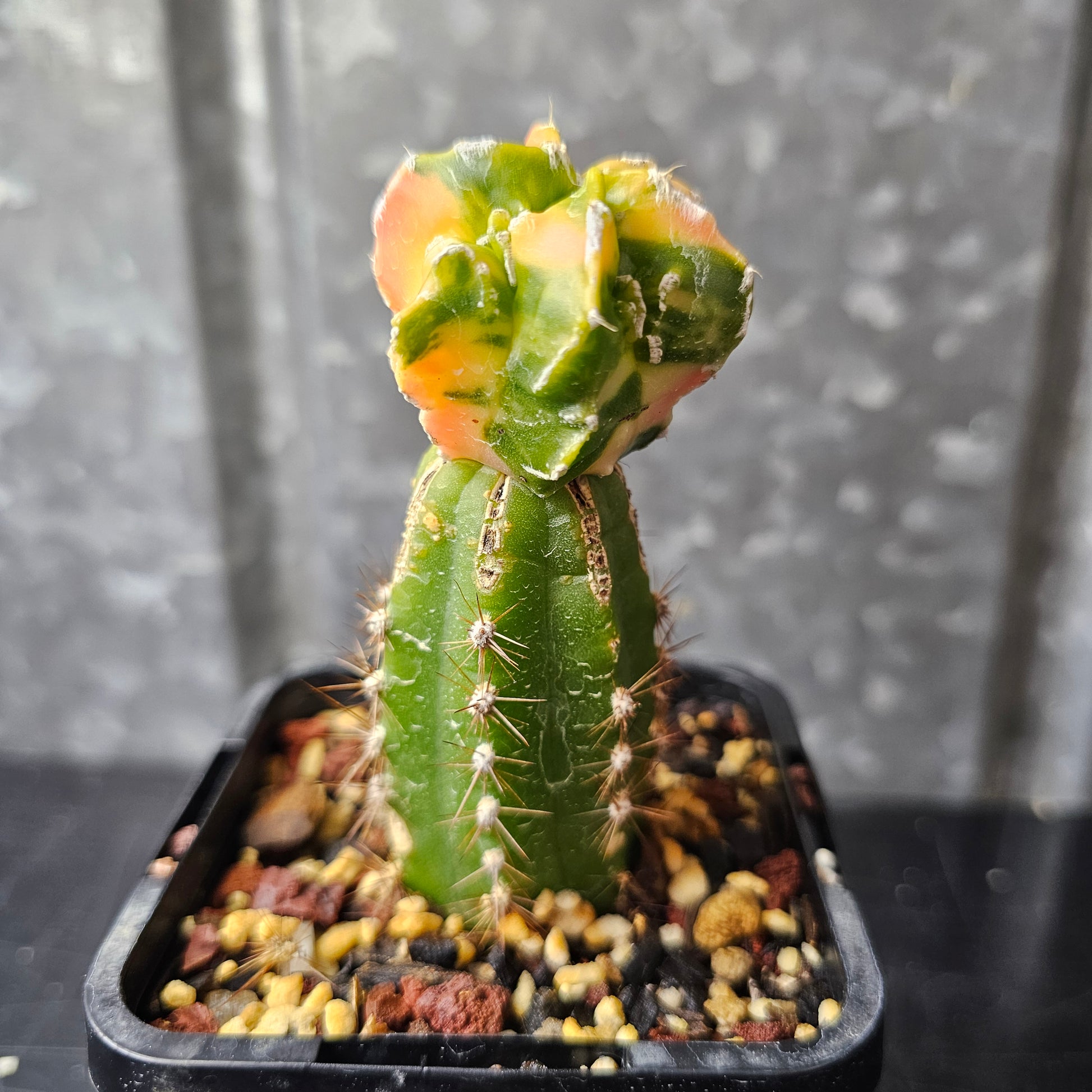 Astrophytum cv. Hekiran Nishiki (Japan), grown from Japanese seed and carrying premium variegation - the kind collectors dream of. Fukuryu traits and mild flocking complete a plant that sits firmly in the prestige class.