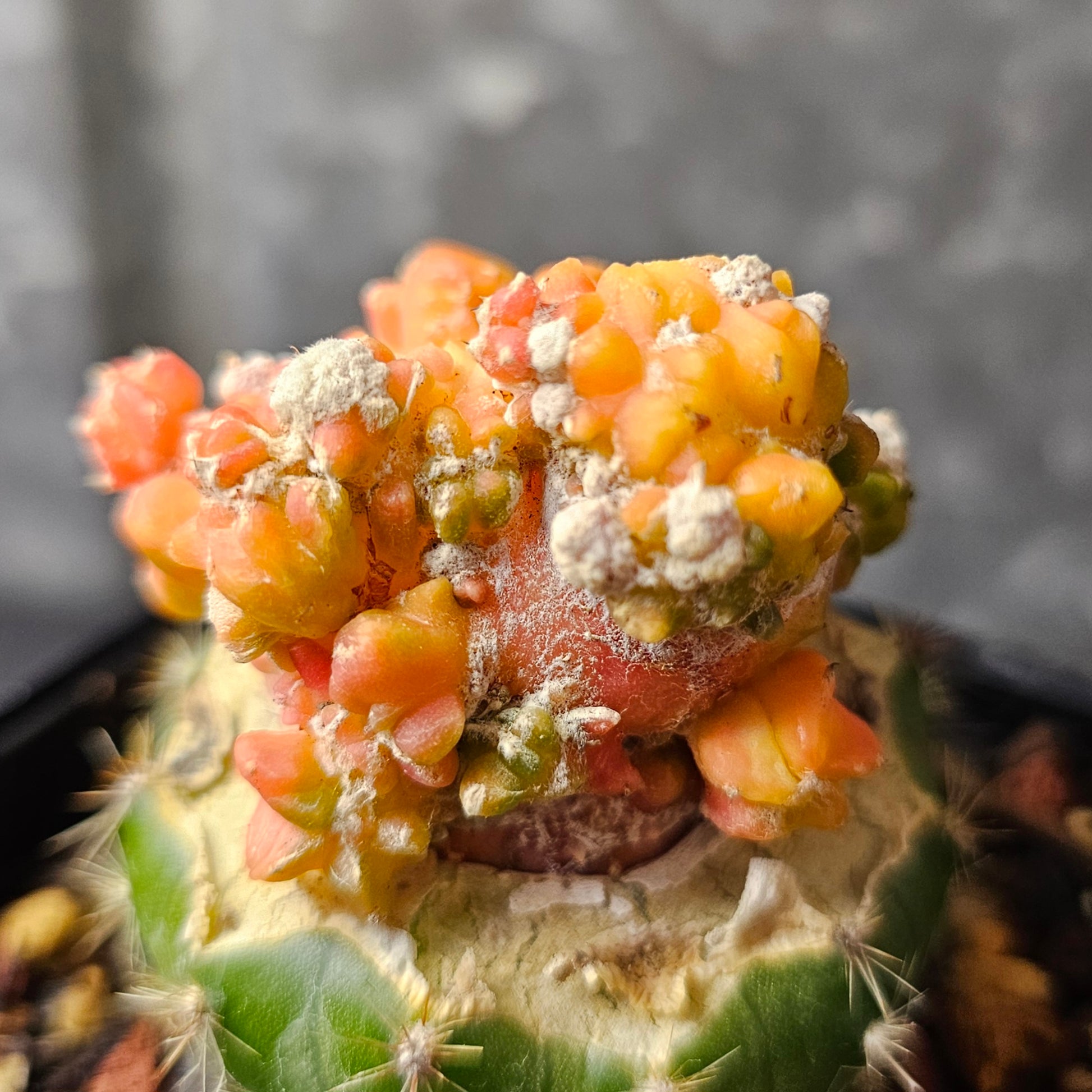 Astrophytum cv. Kikko Yoroi Fukuryu grown from isolated mutant tissue, several years in the making. Bright orange colouring and wild, freaky growth set this plant apart - a true piece for those who seek the rare and the unusual.