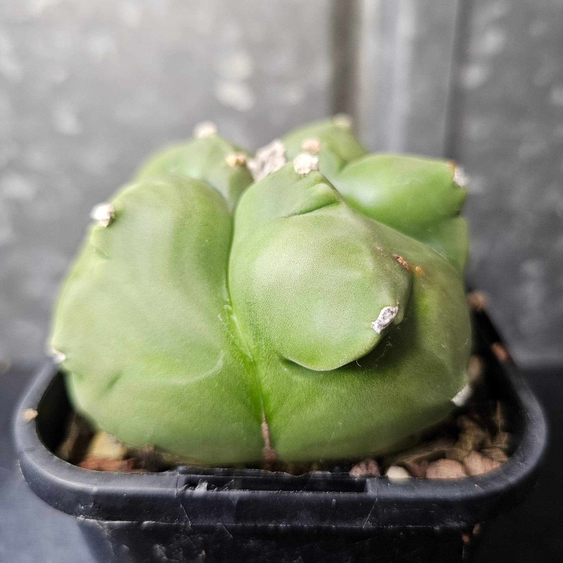 Astrophytum myriostigma cv. Kikko is a rarely offered form presented here as a large, voluptuous specimen with alluring green skin. The body is full and softly contoured, giving this plant strong sculptural presence.
