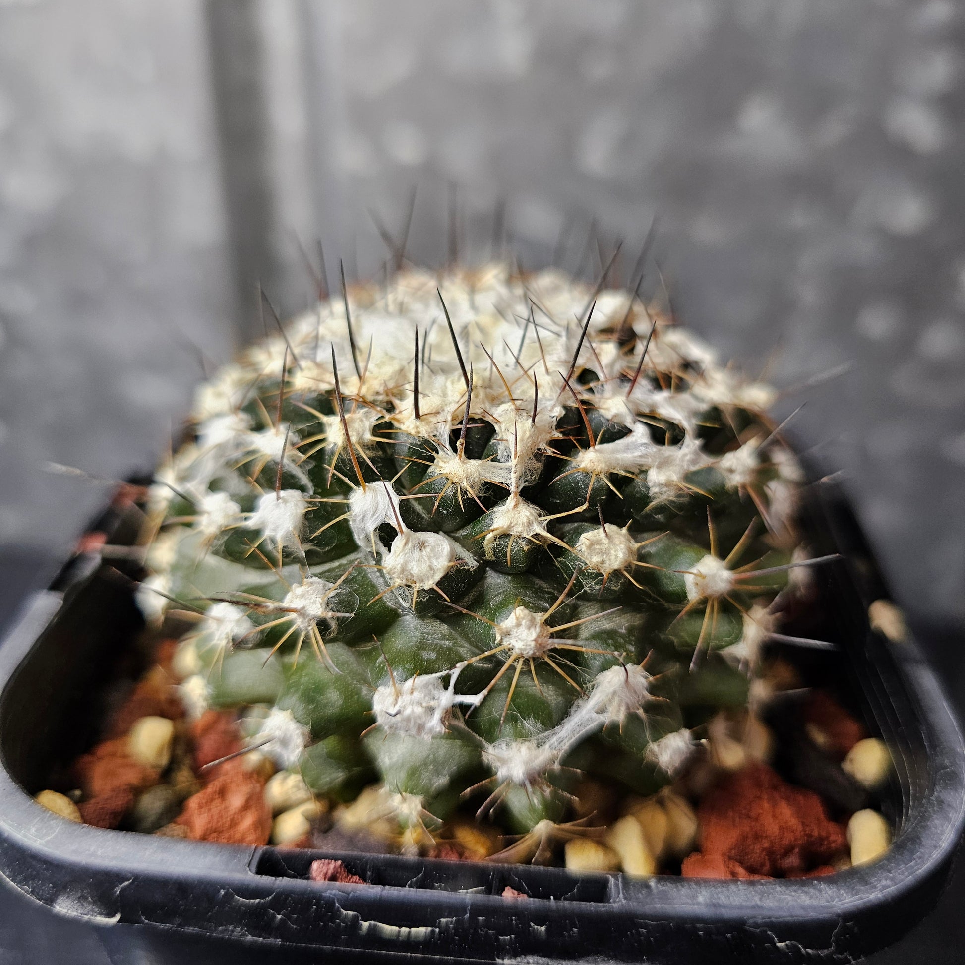 Copiapoa tenuissima - a dark-bodied cactus with fine spination and generous wool. Compact in form yet full of presence, it carries the unmistakable character of a true Copiapoa.