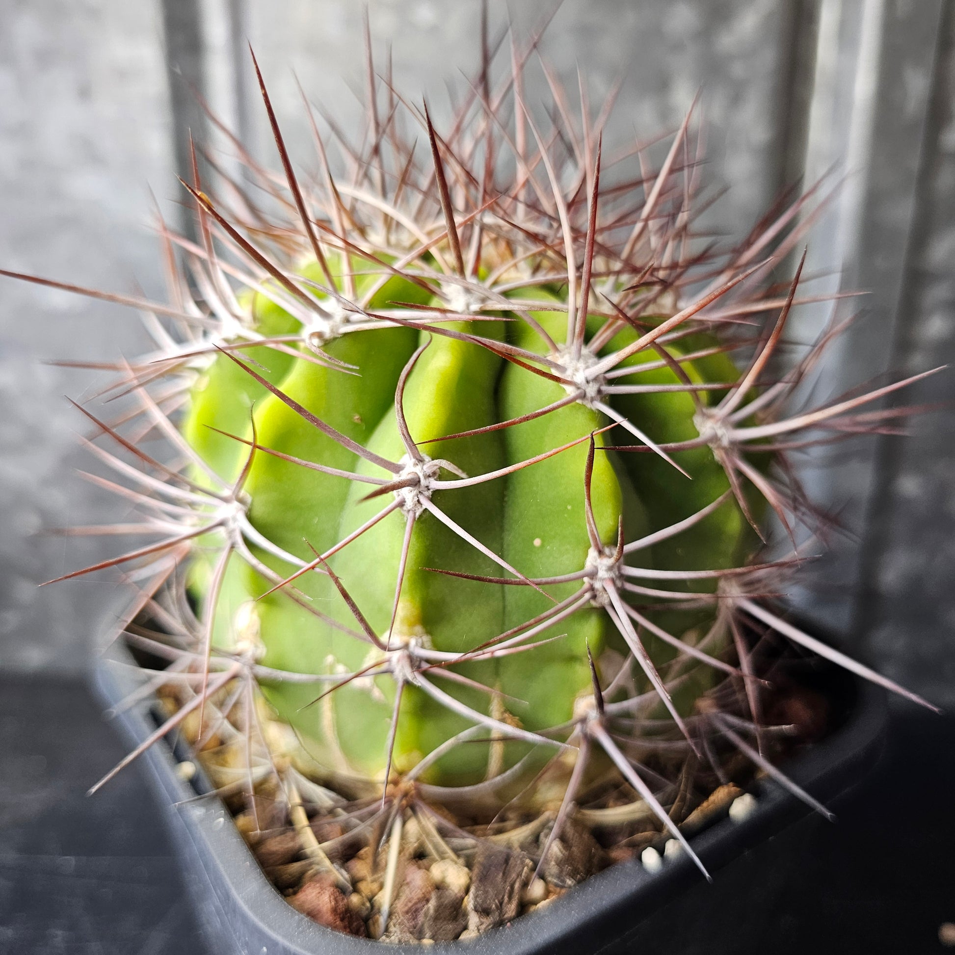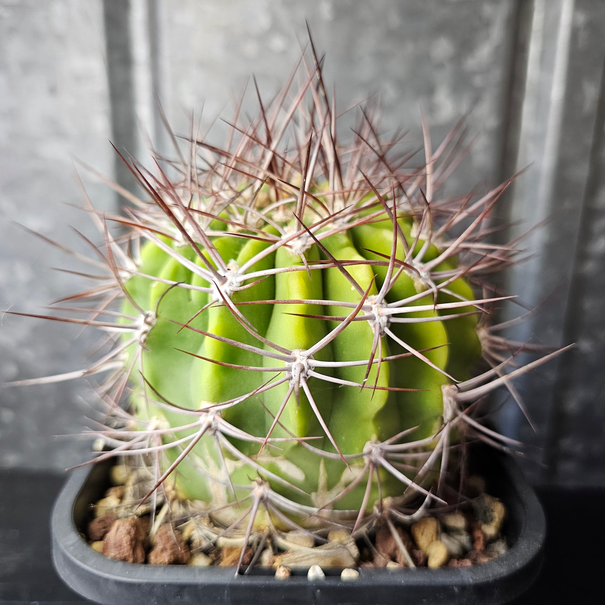 Denmoza rhodacantha features an alluring green body with deep ridges and strong, defined spines. Flowering size and known to flower reliably, producing a highly unique and fascinating flower. One only - will not be repeated.