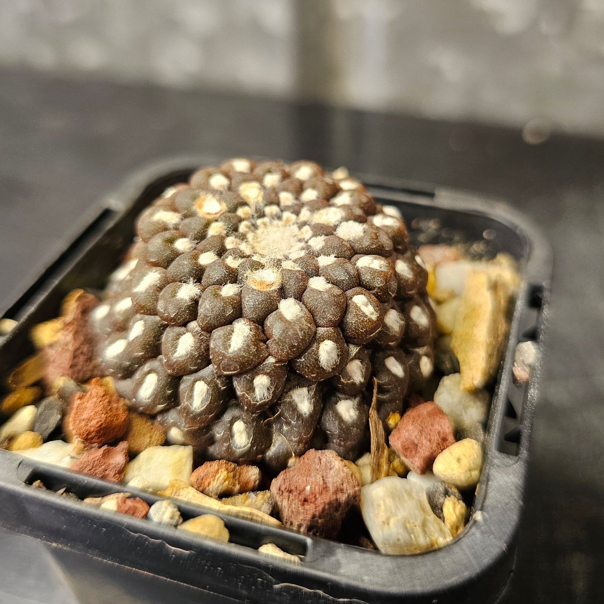 Eriosyce aerocarpa ‘nuda’ FR1425 - a dark-bodied miniature cactus of remarkable presence. This is a very rare form, offered only once and not to be repeated.