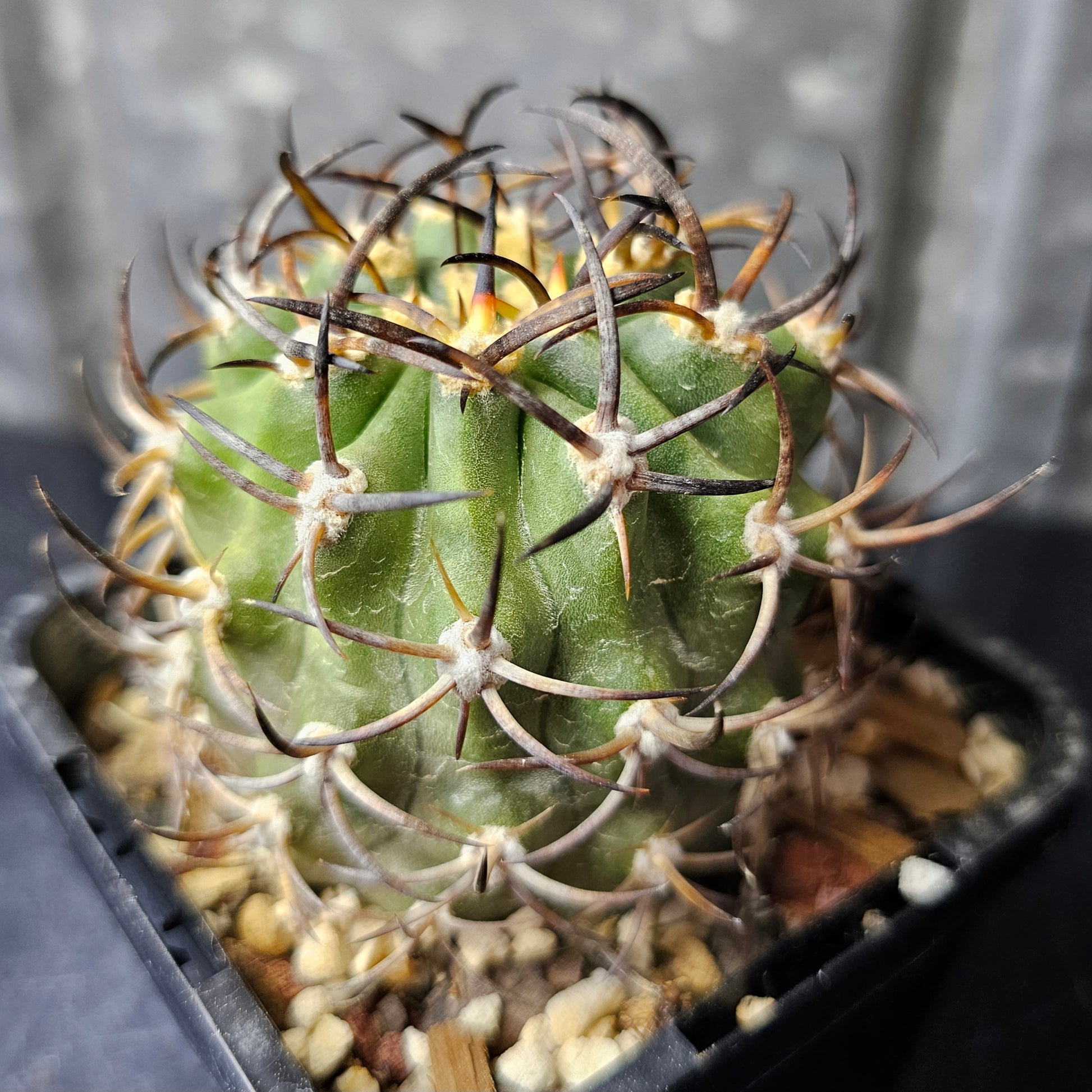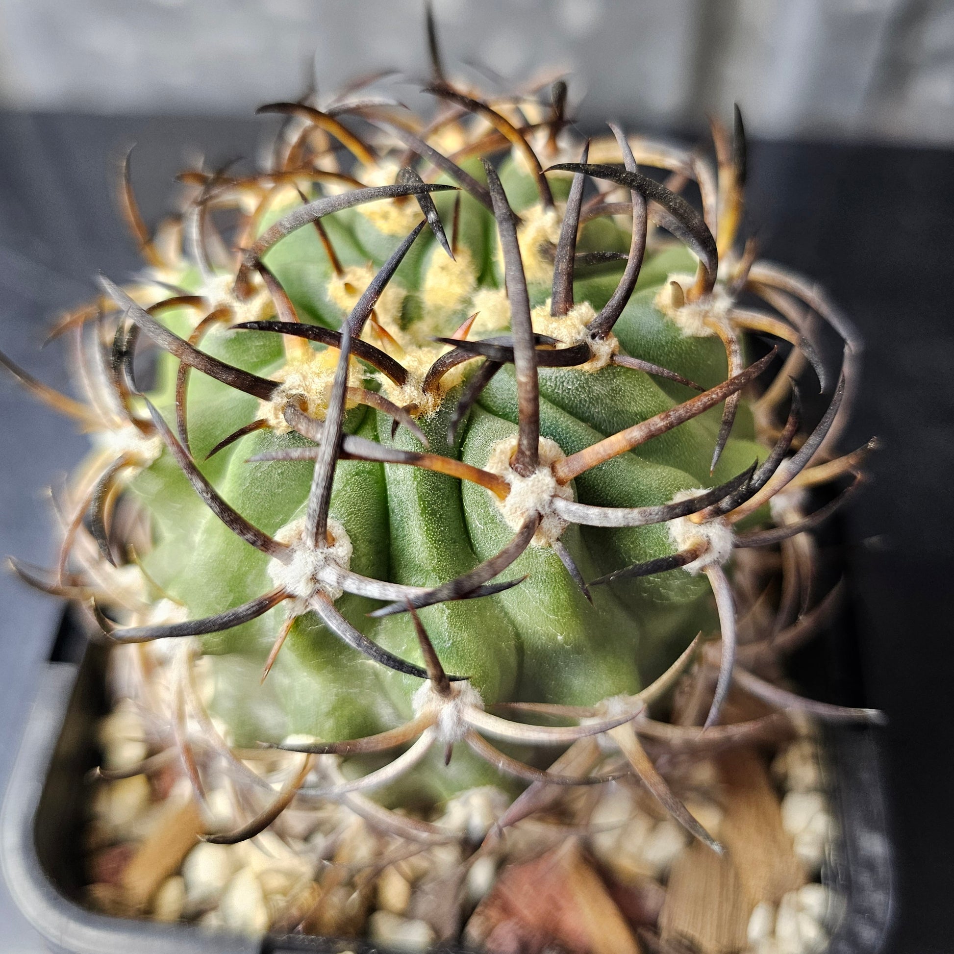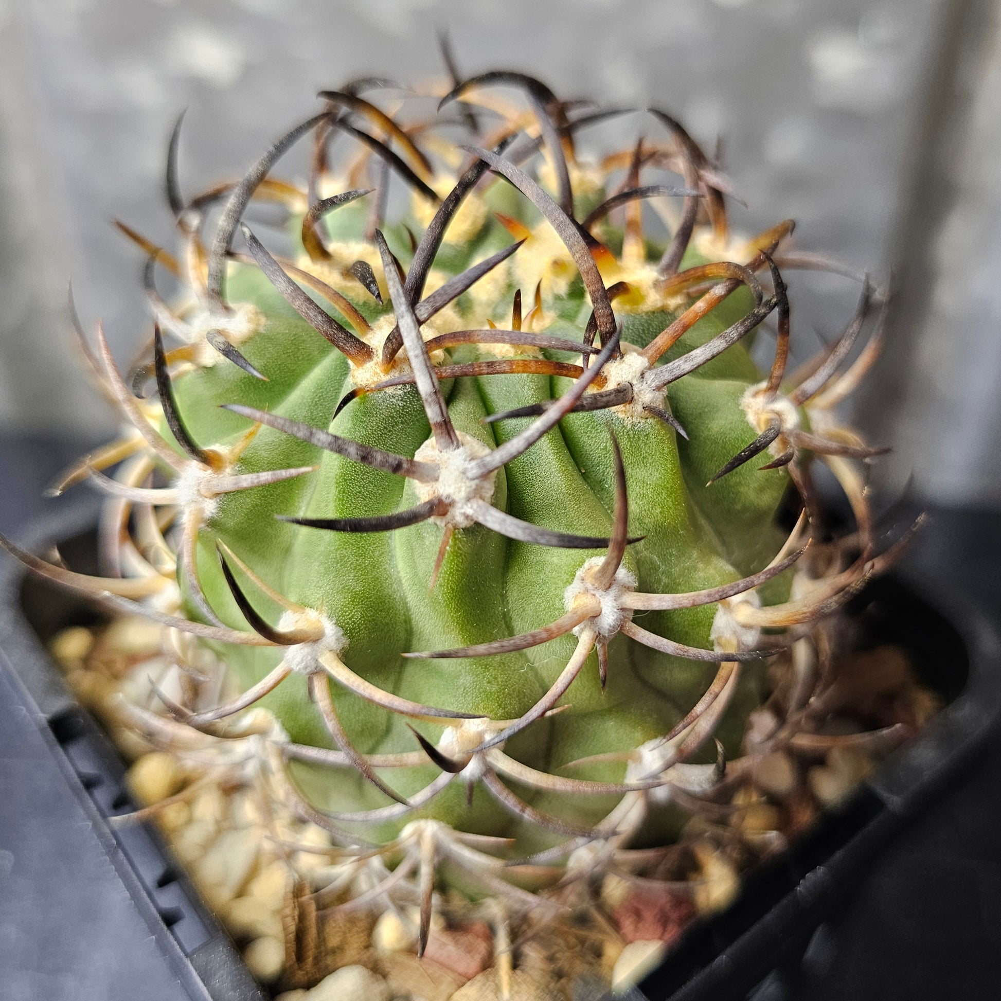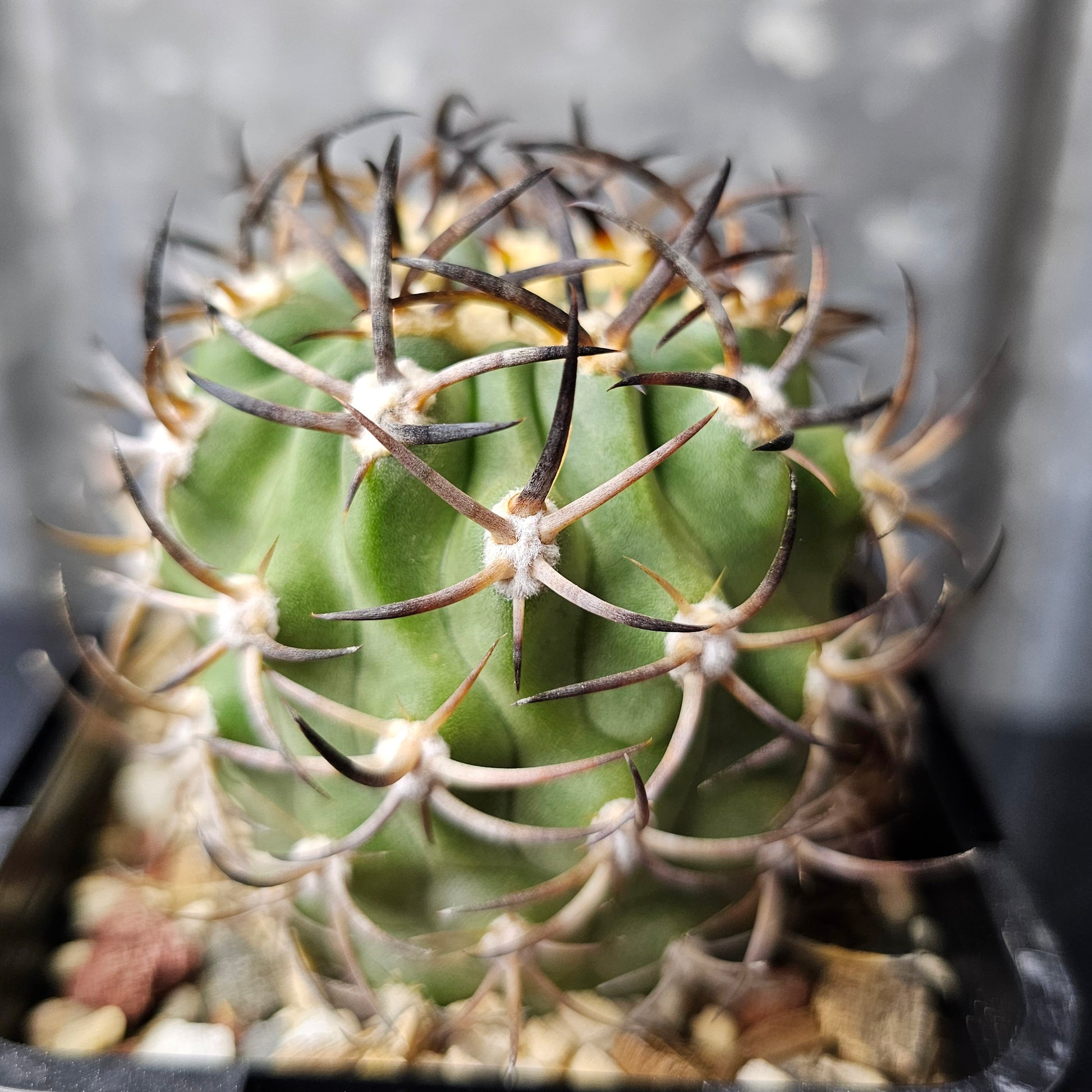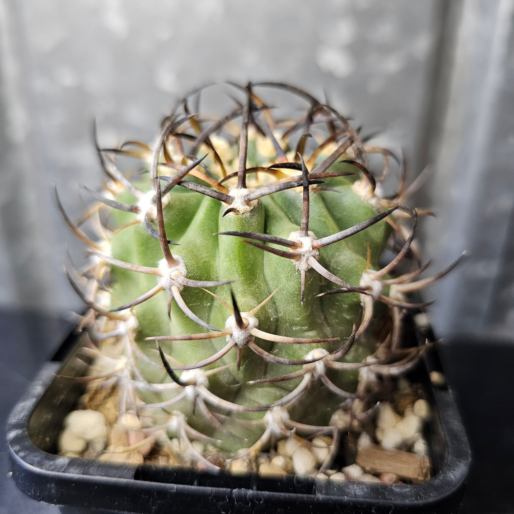 Eriosyce Ihotzkyana with a stout body and magnificent dark spines — one for the astute collector. Rare variety and the last one available. We will not be growing this species again.