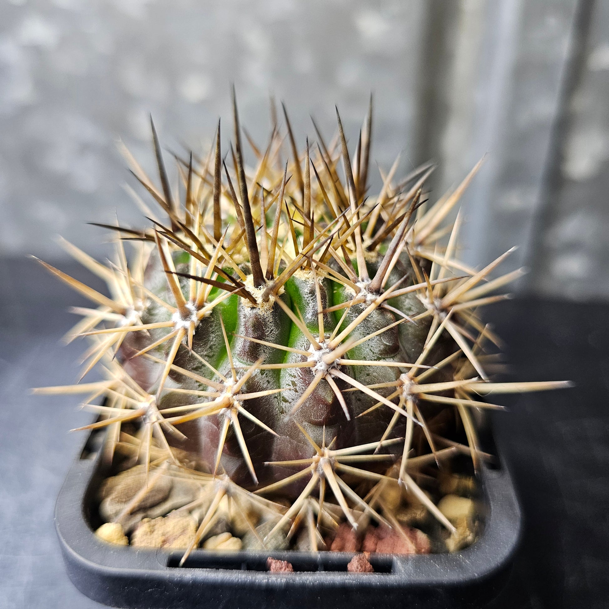 Pyrrhocactus limariensis with a dark, frosty body that intensifies with age. Savage spines and a rugged presence — a standout for collectors who like their plants on the wild side.